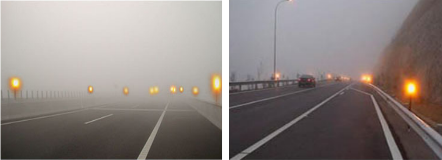 霧天公路(lù)行車安全誘導裝置采用先進的事(shì)故主動防控技術(shù)、通訊鏈路(lù)及光(guāng)能供電技術(shù),适用于城(chéng)市道路(lù)、高速公路(lù)在霧天、強降雨(yǔ)、沙塵暴、煙霧等低能見(jiàn)度下的複雜環境,可(kě)長期連續陰雨(yǔ)日(rì)環境下正常工(gōng)作(zuò),能與能見(jiàn)度檢測器、氣象設備聯動,自(zì)動啓動黃(huáng)燈閃爍以強化道路(lù)的輪廊,并動态跟随車輛(liàng)閃爍紅(hóng)燈,改善霧低能見(jiàn)度路(lù)段行車環境,引導車輛(liàng)安全行駛,有效地防止追尾事(shì)故。