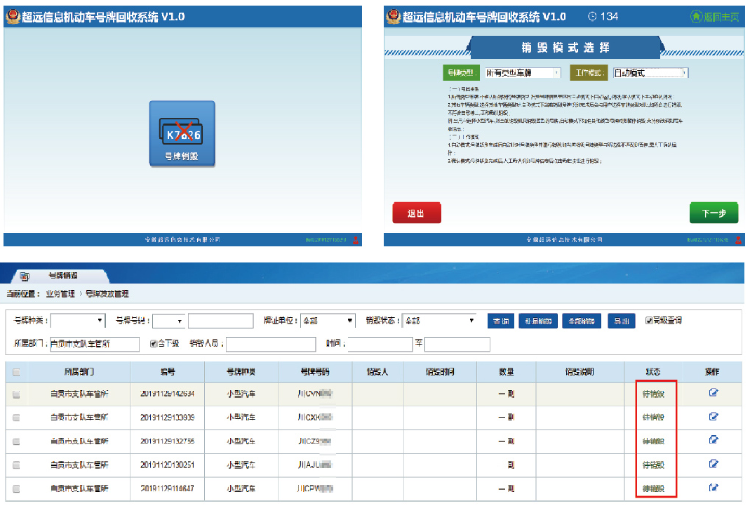 機(jī)動車号牌回收銷毀自(zì)助機(jī)按照(zhào)《機(jī)動車登記工(gōng)作(zuò)規範》的要求,實現了機(jī)動車号牌回收監銷的工(gōng)作(zuò)。設備能夠将報廢過程全程記錄,與公安網(或其他(tā)專網)相(xiàng)連直接将報廢号牌信息上傳系統,方便報廢号牌的歸檔和查找。從(cóng)而防止舊号牌存放(fàng)期間的疏漏,嚴防舊号牌回流社會,有效防止套牌等違法行爲,提高了現場工(gōng)作(zuò)效率和車管所服務水平,規範了廢舊車牌報廢管理(lǐ)流程。