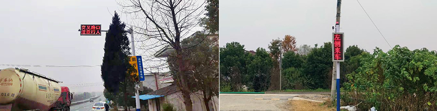 重慶南(nán)川東勝中學路(lù)口,屬于T型交口類型,采用我司道路(lù)安全預警系統,當對向車輛(liàng)通過檢測區域時,預警系統及時提醒主路(lù)車輛(liàng)減速慢(màn)行,提醒支路(lù)車輛(liàng)和行人(rén),注意安全