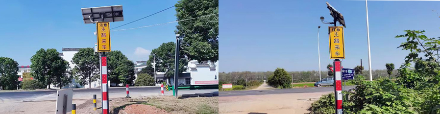 G351國(guó)道謝門(mén)村路(lù)段,屬于T型交口類型。采用我司(簡易版LED燈珠)道路(lù)安全預警系統。當支路(lù)行人(rén)、車輛(liàng)通過檢測區域時,預警系統及時提醒主路(lù)的行駛車輛(liàng),減速通過該路(lù)口。