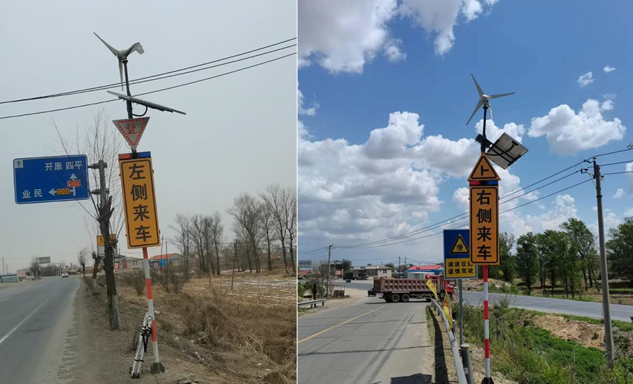 102國(guó)道與二西線交口(西地村),屬于T型交口類型,采用我司(簡易版LED燈珠)道路(lù)安全預警系統,考慮當地風(fēng)能充足,設備由太陽能和風(fēng)能互補供電,當支路(lù)行人(rén)、車輛(liàng)通過檢測區域時,預警系統及時提醒主路(lù)的行駛車輛(liàng),減速通過該路(lù)口。