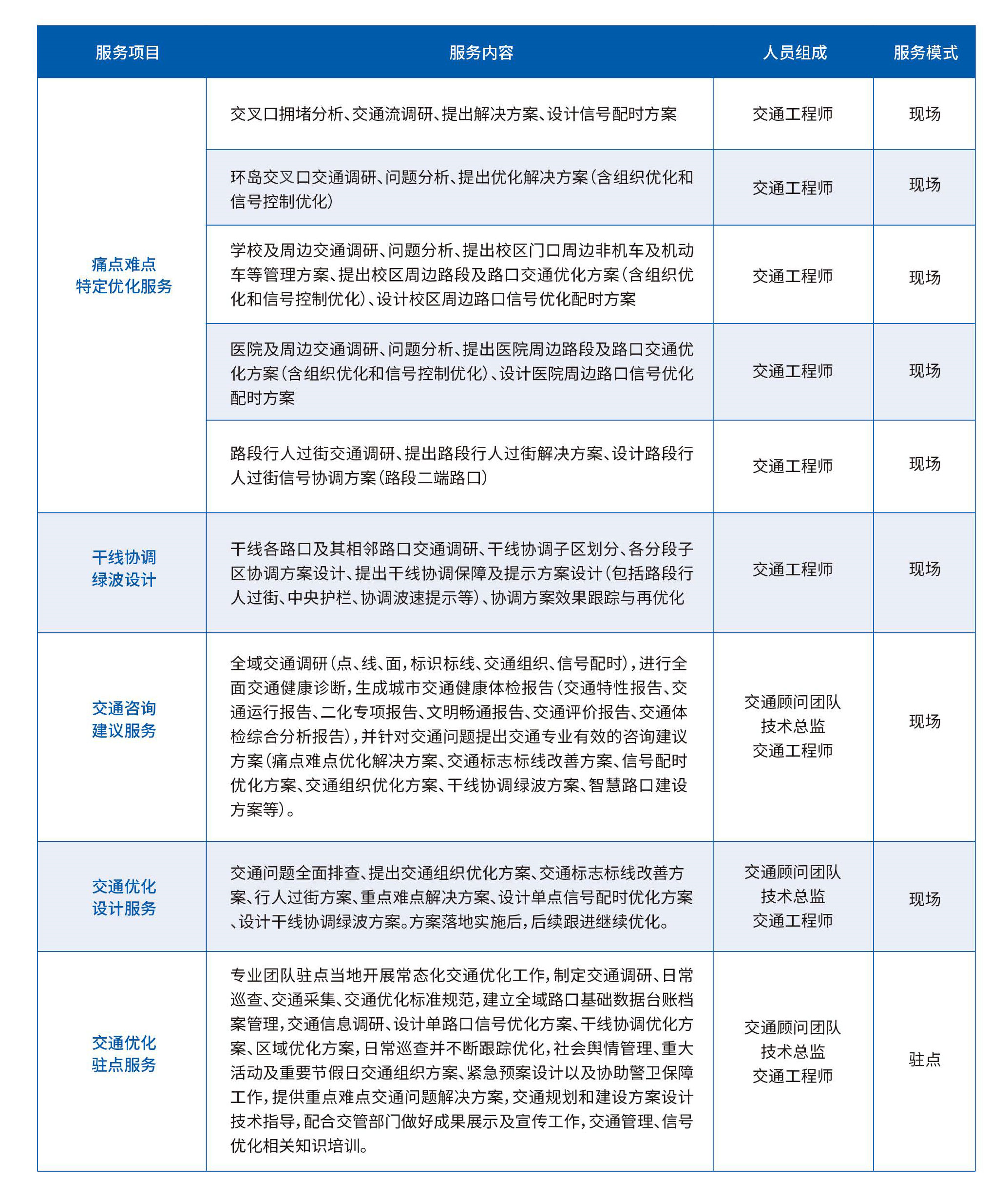 目前,超遠(yuǎn)信息擁有一支50餘人(rén)的專業化“交通優化與設計(jì)服務團隊”,團隊成員(yuán)均畢業于同濟大(dà)學、合肥工(gōng)業大(dà)學、上海理(lǐ)工(gōng)大(dà)學等高校(xiào)交通工(gōng)程專業。該團隊以專業化的技術(shù)能力,積累了6000多個路(lù)口改善經驗,并爲100多個城(chéng)市的交管部門(mén)提供專業交通優化設計(jì)服務,涵蓋交通基礎信息摸查、交通巡查與跟蹤改善、交通組織優化以及信号配時設計(jì)等服務内容,助力交管部門(mén)在交通優化與管理(lǐ)方面工(gōng)作(zuò)的高效開展,提升交通治理(lǐ)能力,保障城(chéng)市交通健康運行。