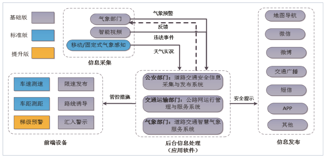 高速公路(lù)惡劣天氣預警防控系統以爲道路(lù)使用者提供更加安全、暢通、快(kuài)捷的通行環境爲主要目标。系統主要圍繞道路(lù)環境監測、事(shì)故預防、車輛(liàng)查控三個方面,将多種前端設備與後端管理(lǐ)平台有機(jī)結合,充分(fēn)運用先進的視頻算法技術(shù),實時分(fēn)析多源數據。實現對高速公路(lù)的氣象環境、通行車輛(liàng)的綜合監測,并通過智能化的系統交互,及時的發布預警誘導信息和精準的調度查控攔截措施,從(cóng)而大(dà)幅度提高車輛(liàng)在各種惡劣交通環境下的通行安全,有效提升高速公路(lù)緝查布控的警力資源效率。