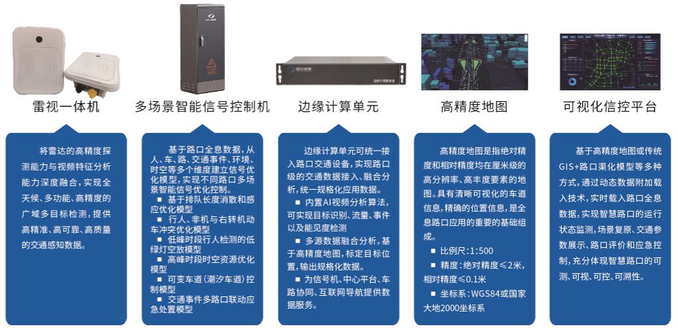 公司憑借十多年(nián)行業積累優勢,圍繞智慧路(lù)口的應用,以數據驅動爲根基,端和邊爲切入點,探索路(lù)口的人(rén)、車、路(lù)事(shì)件(jiàn)、環境的全息感知。基于高算力的A|邊緣計(jì)算單元,接入雷達、視頻、雷視一體(tǐ)機(jī)等檢測設備,并借助于路(lù)口高精度地圖,進行場景化數據融合,打造路(lù)口全息數據孿生(shēng)底座。結合我司智能信号控制機(jī),協同虛拟與現實技術(shù)的可(kě)視化信控平台,實現路(lù)口的智能自(zì)适應控制、全息運行狀态監測、路(lù)口評價、交通參數展示、危險事(shì)件(jiàn)實時警示和處置等-體(tǐ)化智慧路(lù)口解決方案。